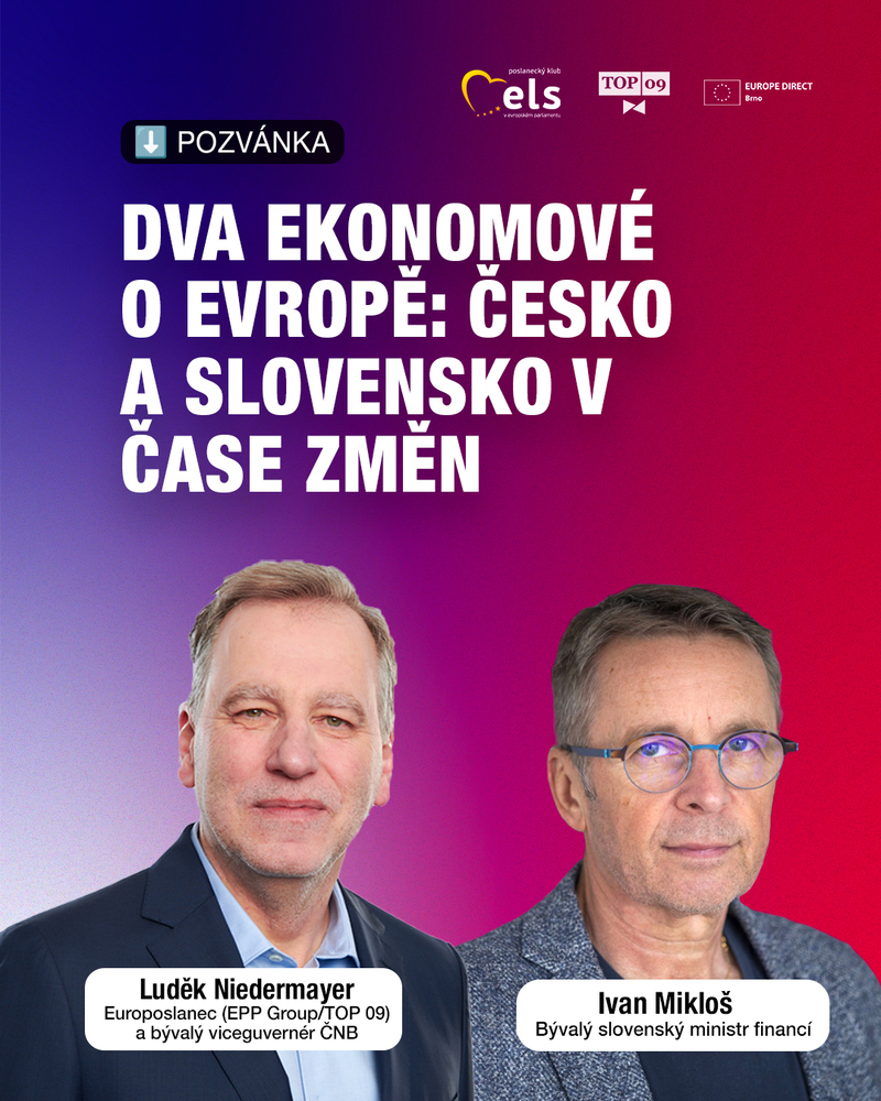 Velmi rád bych vás proto pozval na večerní debatu „Dva ekonomové o Evropě: Česko a Slovensko v čase změn“, kde společně s mým vzácným hostem Ivanem Miklošem, bývalým slovenským ministrem financí a prezidentem ekonomického think-tanku MESA 10, nabídneme dva pohledy na současné dění: jeden vycházející z každodenní reality evropské politiky a jejího střetu s českou domácí politikou a druhý z dlouholeté expertízy z ukrajinského prostředí a dění na Slovensku. Moderovat debatu bude vedoucí komentářového oddělení Seznam Zpráv Kateřina Šafaříková.