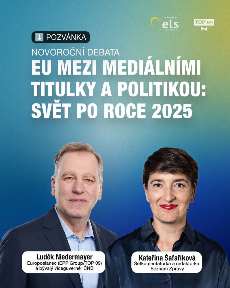 Rád bych vás proto pozval na novoroční debatu EU mezi mediálními titulky a politikou: svět po roce 2025. Společně s novinářkou Kateřinou Šafaříkovou (Seznam Zprávy) nabídneme dva pohledy na evropské dění: jeden vycházející z každodenní reality evropské politiky a druhý z českého mediálního a společenského kontextu. Budeme mluvit o klíčových evropských rozhodnutí, jaké události dnes formují Evropu a proč se jejich význam v české debatě někdy vykládá odlišně, než jak se skutečně odehrávají.